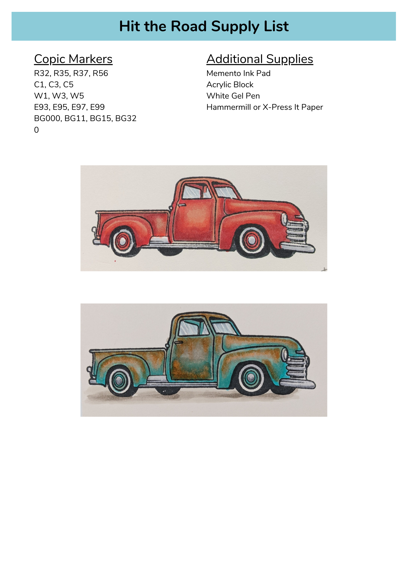 A supply list that includes all the markers and additional supplies that I will be using in class.